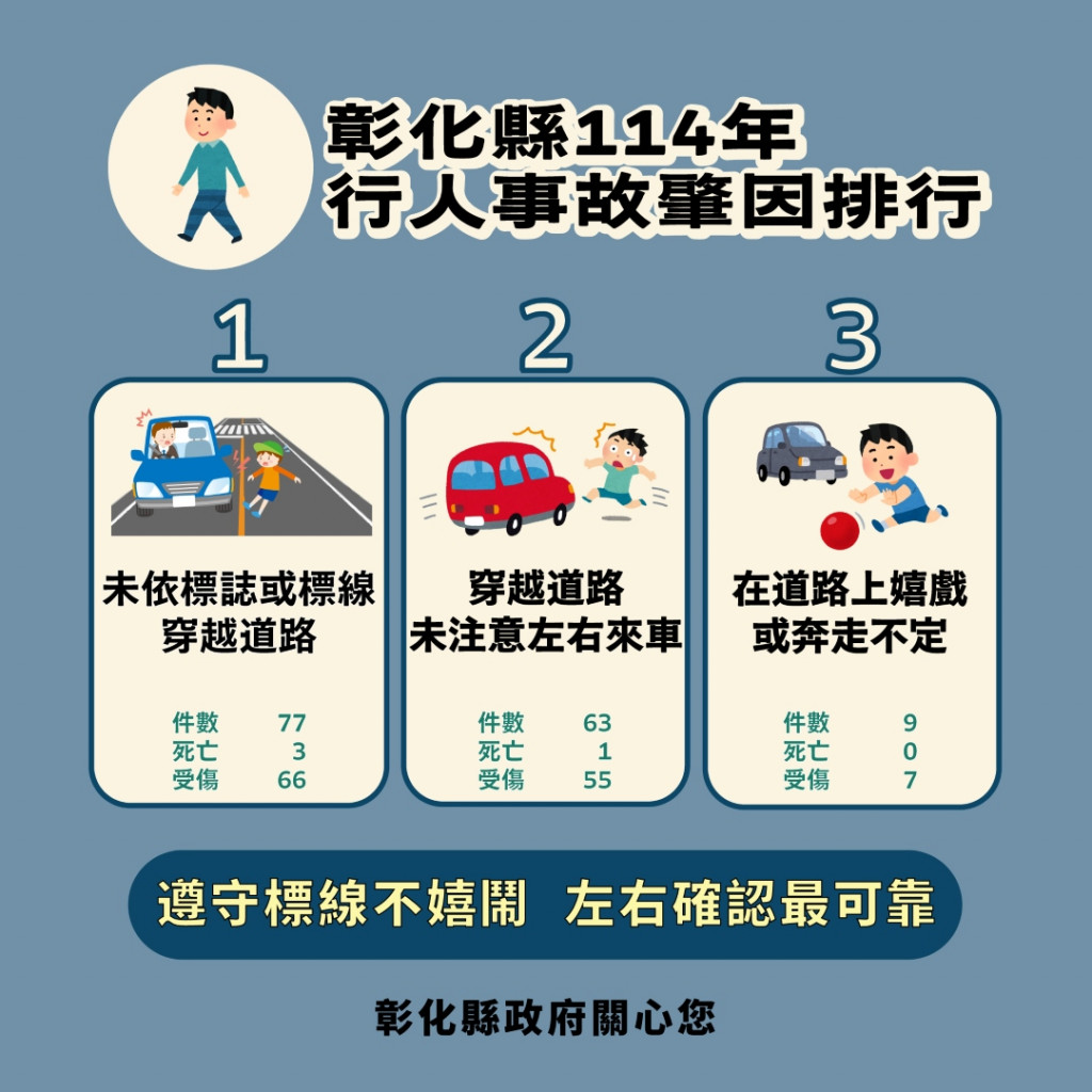 | 三、 | 依據交通部道路安全資訊平台系統分析數據,114年彰化縣事故肇因排行: |